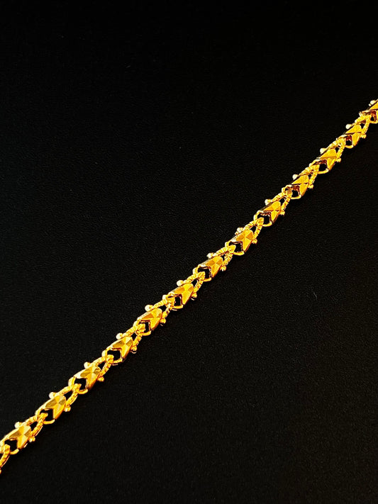 With The Breathtaking Array Of Bracelets That Panjab Jewellers Has To Offer, You Can Give Your Appearance A Touch Of Sophistication. The Tennis Bracelets And Chain Bracelets That We Provide Are The Embodiment Of Classic Elegance Since They Are Crafted From The Extremely Sumptuous 22k Gold. Our Bracelets Are Made To Suit Any Dress And Occasion, From Delicate Bangles To Dramatic Statement Pieces. They Are Offered A Diverse Selection Of Styles To Choose From.