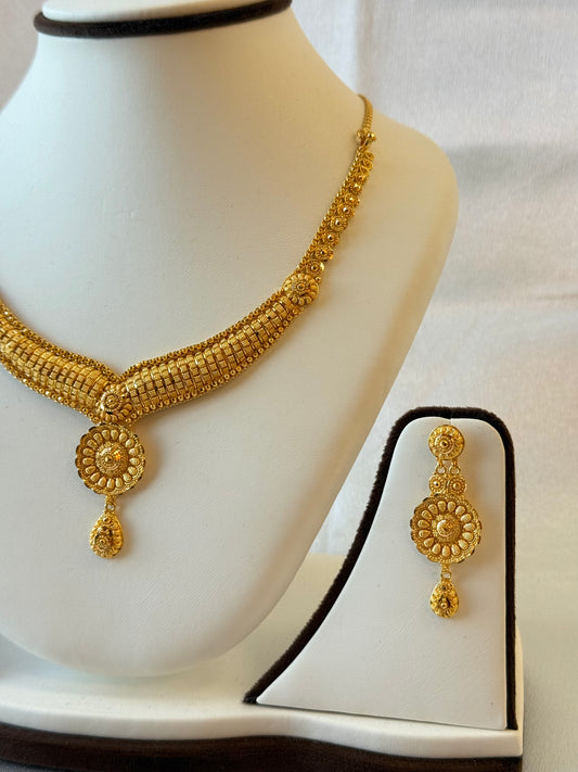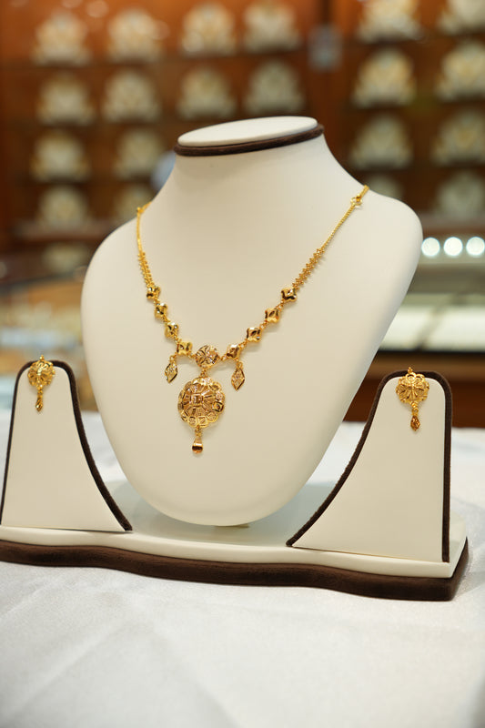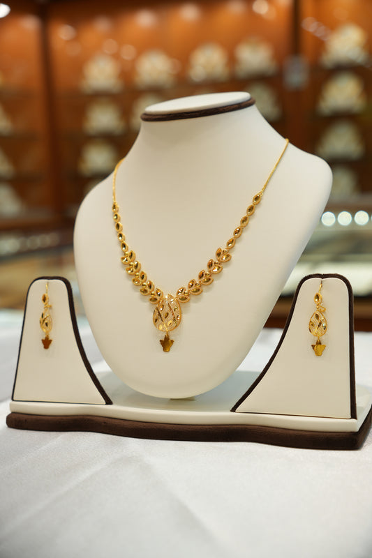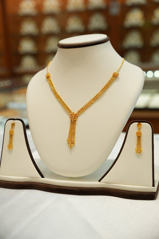 Indulge in the timeless beauty and luxury of our Gold Necklace collection at Panjab Jewellers. Crafted with the utmost precision and artistry, our necklaces in 22K gold are the epitome of elegance and grace. Whether you're seeking a delicate chain to complement your everyday look or a statement piece to elevate your special occasions, our necklaces cater to all styles and preferences.