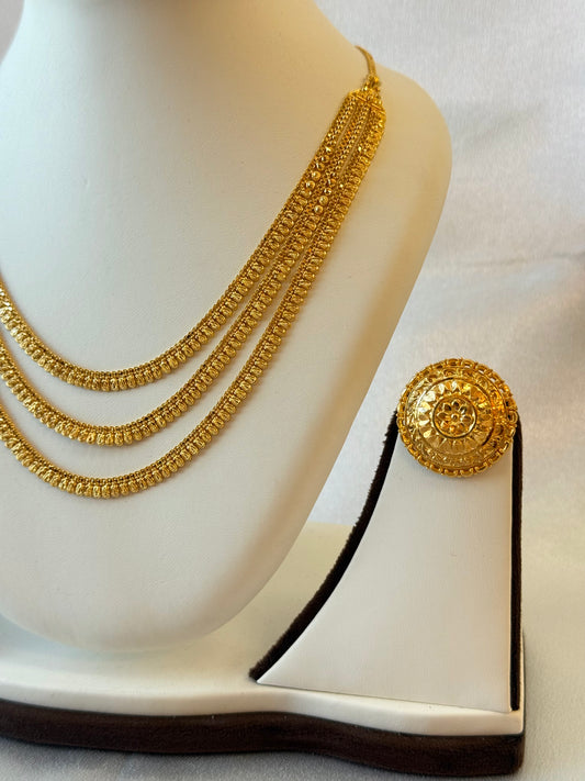 From intricately designed pendants to stunning layered pieces, each necklace in our collection tells its own unique story. The exquisite 22K gold used ensures a luminous shine that radiates with every angle, making it a versatile and valuable addition to any jewellery box. These pieces are perfect for layering or standing alone, offering a sophisticated flair to both casual and formal outfits. At Panjab Jewellers, we pride ourselves on exceptional craftsmanship and quality. Each necklace is crafted by skilled artisans who bring passion and attention to detail to every creation. Whether you're treating yourself or gifting someone special, our gold necklaces are designed to leave a lasting impression, becoming treasured heirlooms for generations to come.