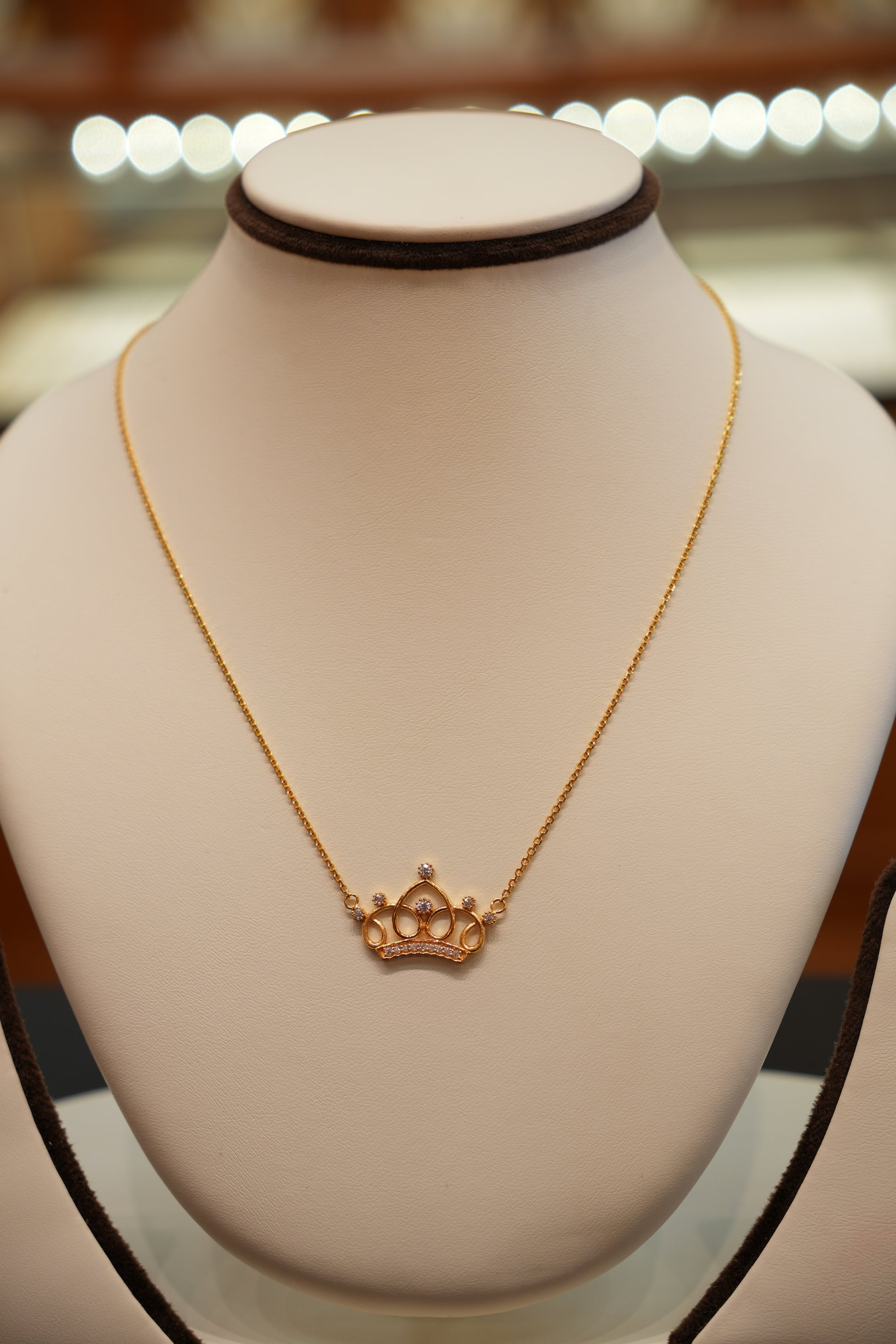 18 Inch 22K plain gold crown-pendant chain